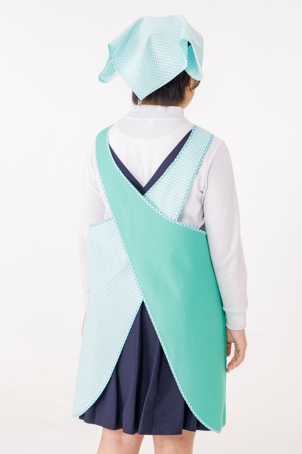 エプロン、三角巾、給食袋の3点セットでの販売となります。(分売は不可)